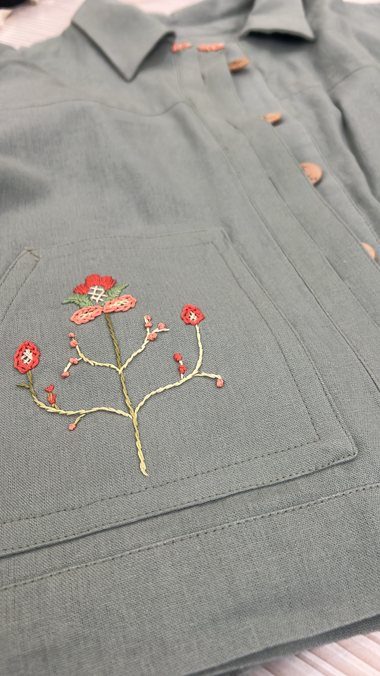 ژاكت لينن روشِن ،از كالكشن نفس <تابستان را نفس بكش> گلدوزي شده با دست و نخ دمسه آلماني با حس استايل ، حصي متفاوت را تجربه كنيد!!